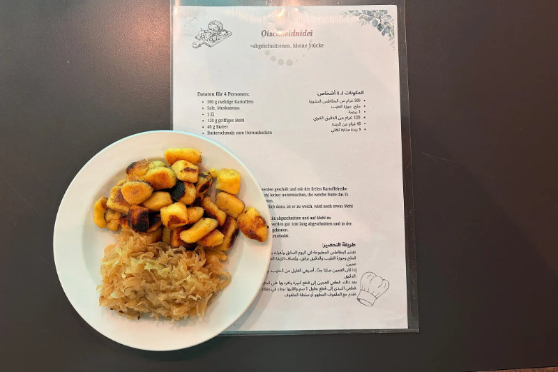 Vergangenen Donnerstag war es jedenfalls so weit: Mit Unterstützung von Andrea Rieder - sie ist Autorin der Bücher "Andrea kocht - Pinzgauer Kost und mehr, I und II" - ging es im Klausnerhaus in Hollersbach für Frauen aus Syrien, Simbabwe und dem Südsudan an die gemeinsame Zubereitung von (Oischneid)nidei mit Kraut, Bedlmandlgulasch und Äpfönudeln.
