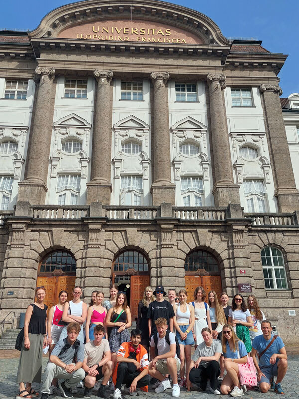 Unsere Reise begann am Montag um 8:30 Uhr am Mittersiller Bahnhof. Nach der Ankunft am Universitätsinstitut bekamen wir eine Einführung von Leander Stark. Anschließend gab uns Prof. Armin Hansel die wichtigsten Infos zur Laborsicherheit. Unseren ersten Abend verbrachten wir in der Innenstadt zum Abendessen. Auf dem Weg kam uns auch das bekannte Goldene Dach unter.